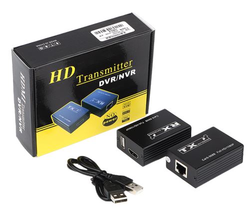 1. Plug the sender of the HDMI extender into the HDMI signal source, such as: CCTV, DVR, NVR hard disk video recorder.